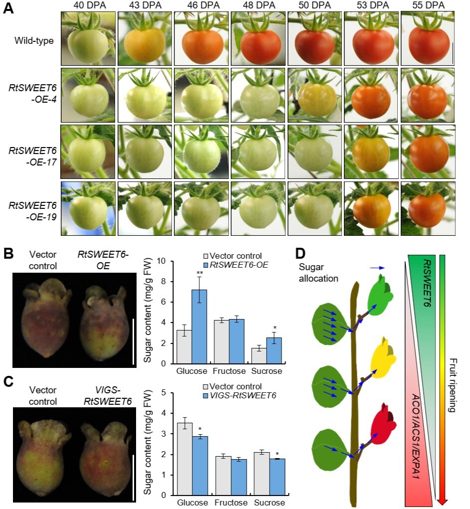 2025-12-25New progress on the key regulatory mechanism of sugar accumulation and ripening in rose myrtle fruitsThe fruits of Rhodomyrtus tomentosa, containing abundant bio-active compounds, are usually used for fresh eating and food processing. Researchers reveal that RtSWEET6 is a hexose transporter that regulates sugar allocation and fruit ripening, providing a strategy for improving sugar content and extending the shelf life of fresh fruits. Rhodomyrtus tomentosa (Ait.) Hasskis an emerging berry fruit crop widely distributing across tropic and subtropic regions. The fruits of R. tomentosa, which contain abundant anthocyanins and sugar,are consumed freshly or processed as beverages, jams, and jellies. Owing to the thin skins and soft flesh, the berries decay rapidly after ripening an...Read More
