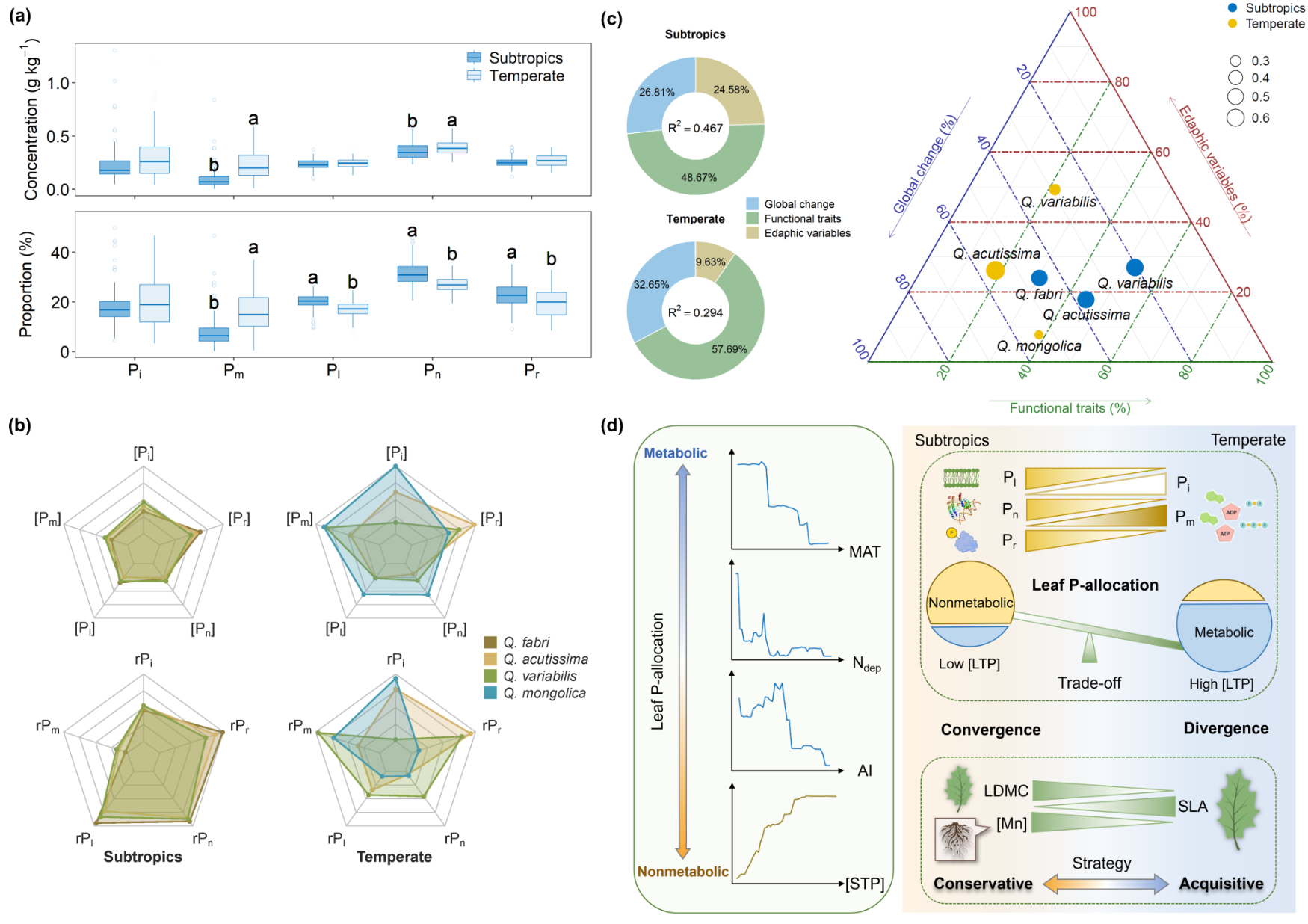 2026-01-09New progress on leaf phosphorus-allocation strategies of deciduous oaks in ChinaThis study unravels contrasting leaf P-allocation patterns of deciduous oaks in subtropical and temperate forests, which are mainly driven by global change rather than edaphic factors. It provides new avenues for exploring nutrient strategies of congeneric species growing in diverse environments. Allocation patterns of leaf phosphorus (P) reflect trade-off strategies of plants to maintain and/or enhance P-use efficiency under diverse environments. Understanding the variation in leaf P-allocation across geographic ranges is crucial for predicting the changes in plant growth and ecosystem functioning, and the potential geographic shifts of...Read More