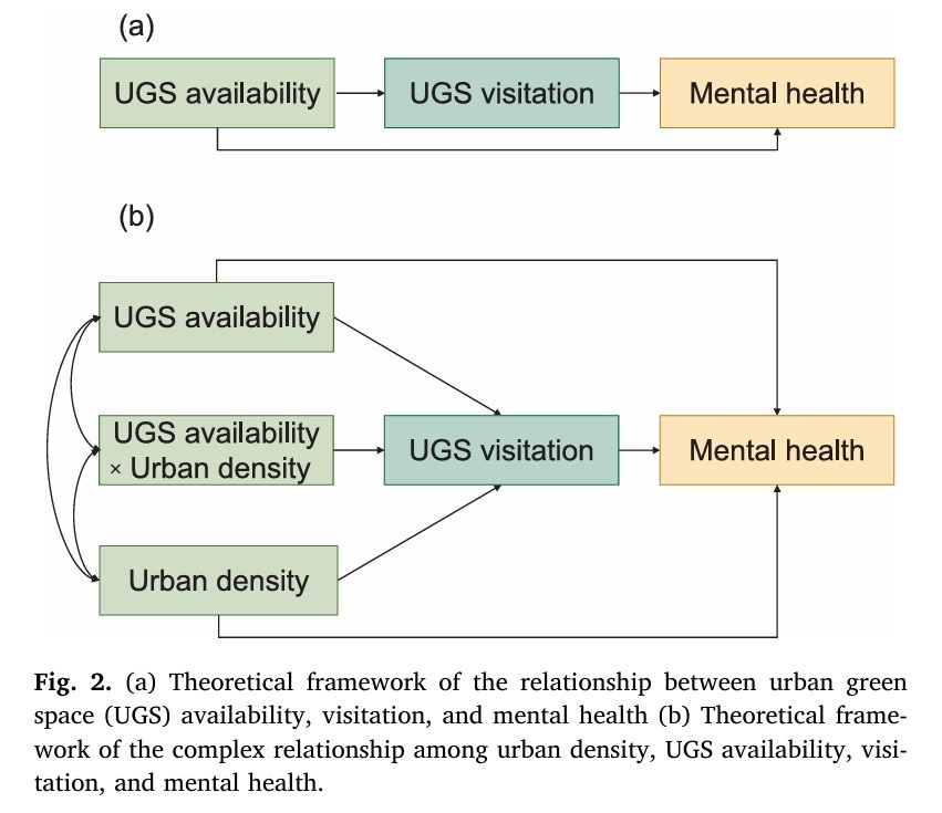 These findings provide novel empirical evidence for optimizing UGS planning: increasing UGS and its visitation can reduce the negative mental health impacts of high urban density and prioritizing communal gardens and municipal parks is advisable, given their positive effects on three mental health outcomes.