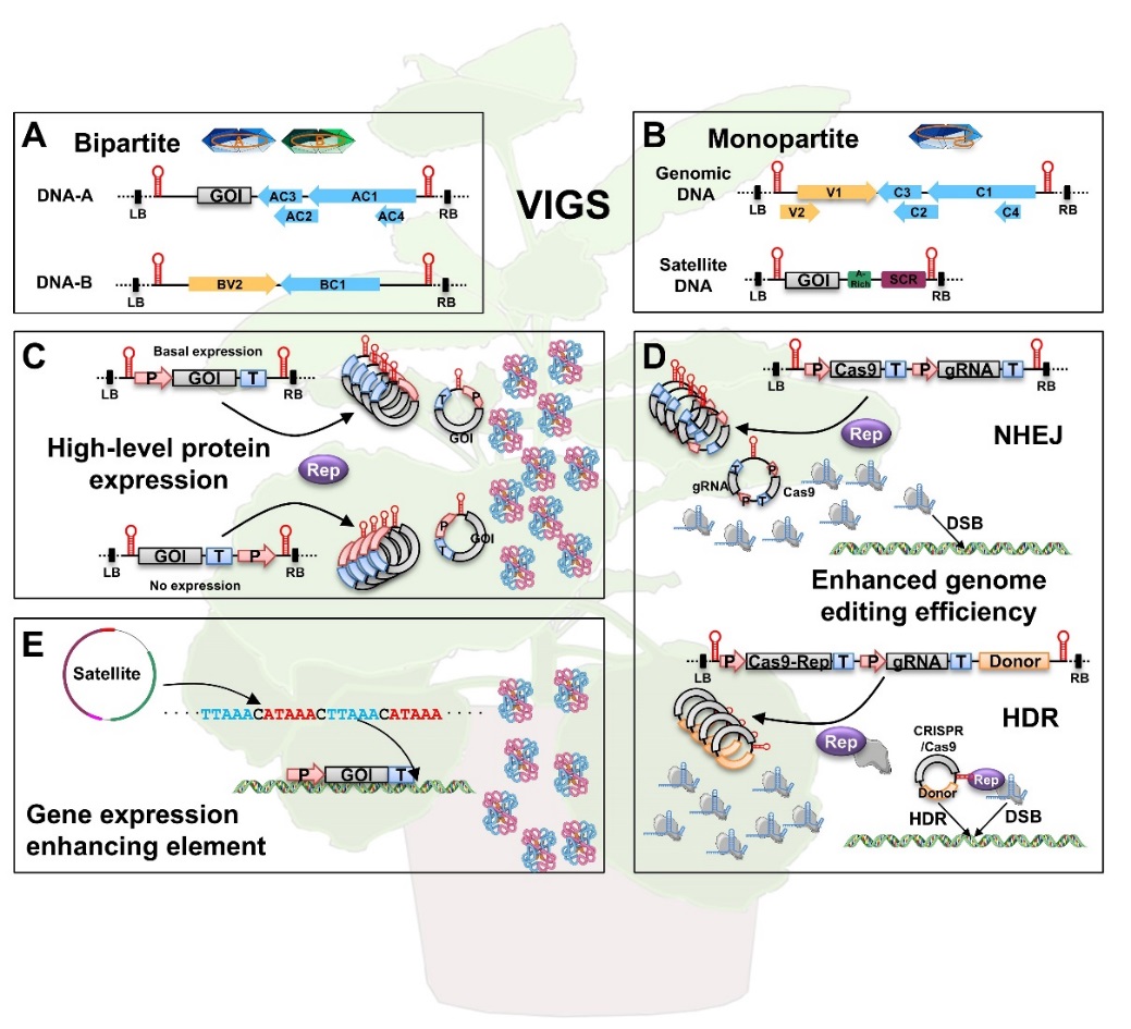 Fig. 2. Geminiviral vectors and their applications.(Image by ZHANG et al.)