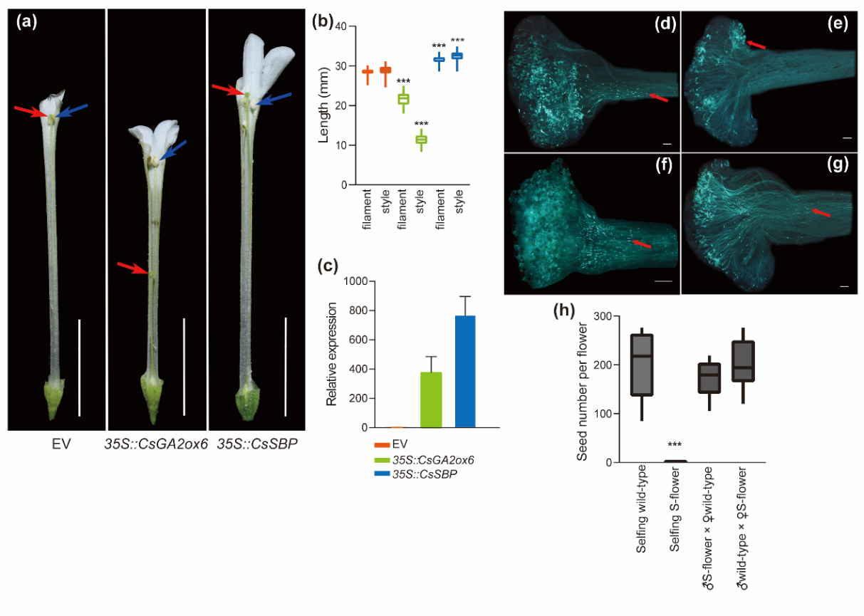 Fig. 2. Overexpression of CsGA2ox6 in tobacco resulted in pronounced style shortening and self-incompatibility.(Image by SHI et al.)